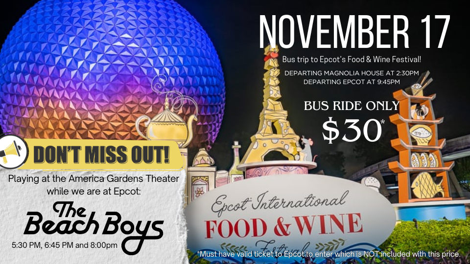 Bus Trip to Epcot's Food & Wine Festival - Bus Trip